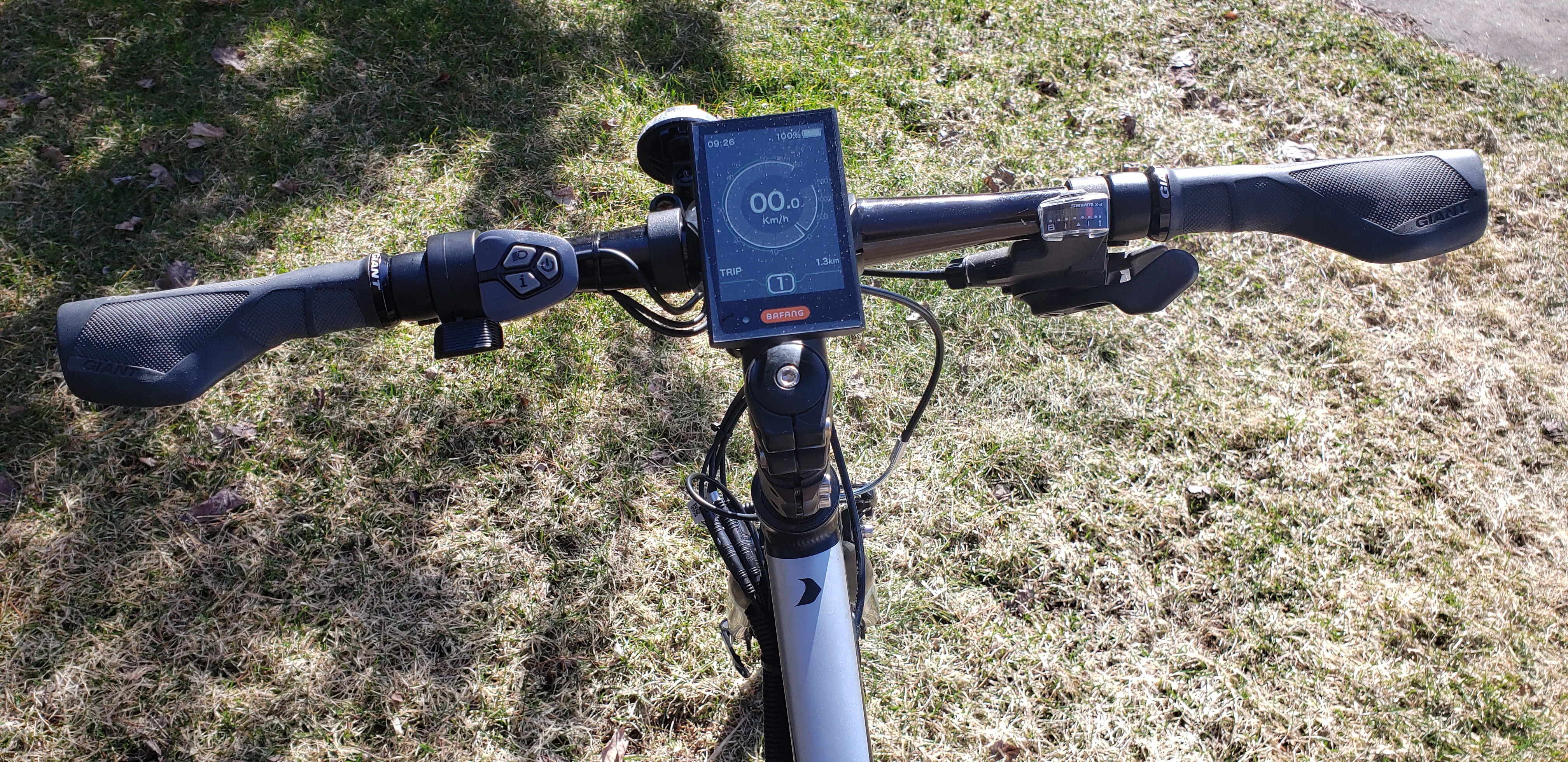 batterie 17.5 Ah sur rack arrière, contrôleur, afficheur couleur.