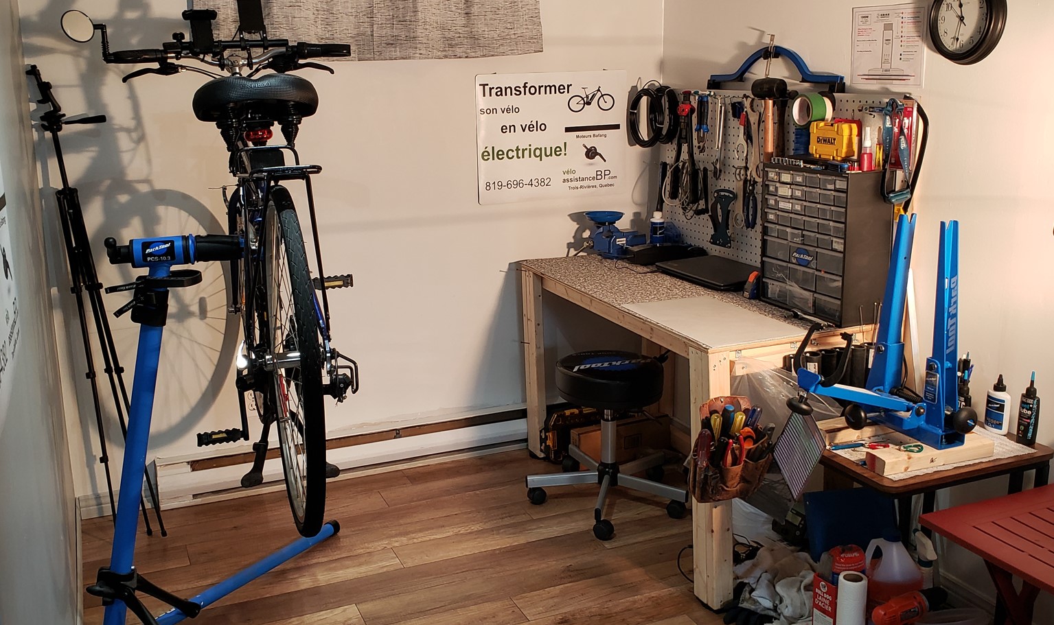 Je vous offre la gamme complète de services pour les vélos dans mon atelier, incluant les mises-au-point annuel, alignement de roues, nettoyage de chaines et dérailleurs, laçage de roues, rempacement de rayons, de câbles de dérailleur ou freins, ainsi que leurs gaines.